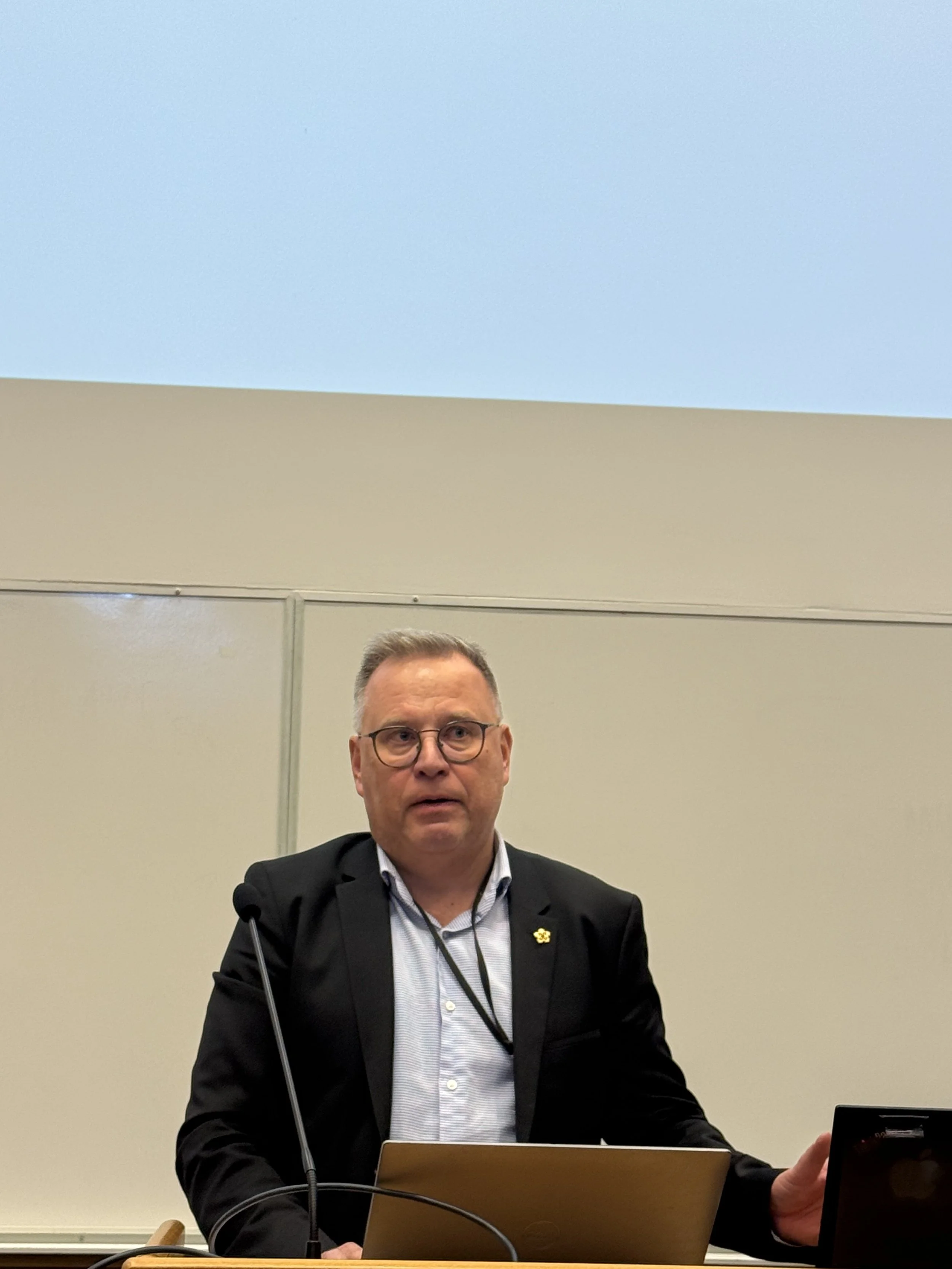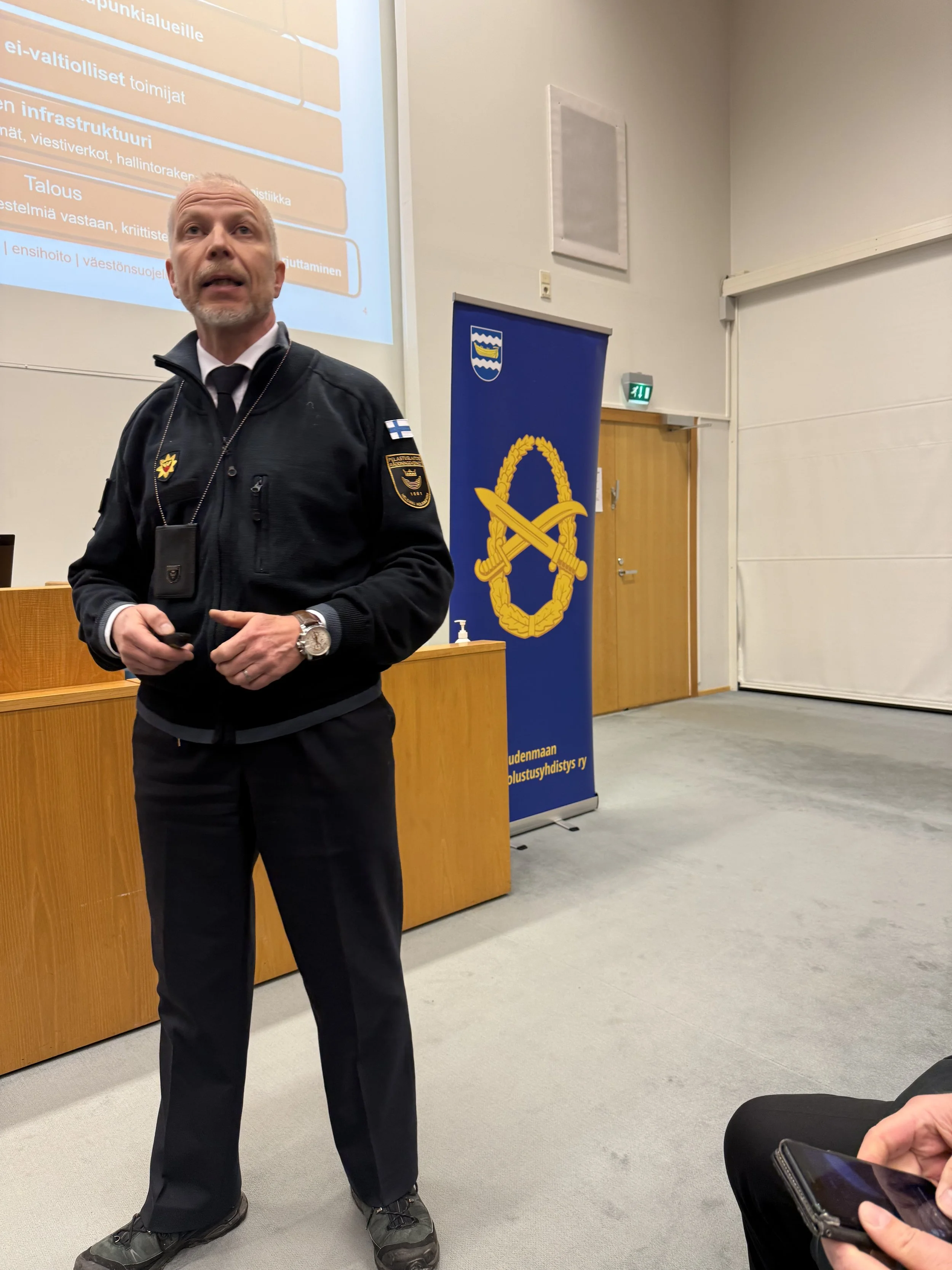 Pelastustoimen kenttään ja yhteiskunnan varautumiseen yhdistyksen jäsenet johdatti Pasi Raatikainen, jonka alkuun esittämät videot Ukrainasta veivät meidät kaupunkisodan ja siiviileihin kohdistuvan raakuuden keskelle. Jatkuvat, usein yölliset pääasiassa siviilikohteisiin ja infraan (lämpö, sähkö, vesi) sekä mm. terveydenhuoltojärjestelmään kohdistuvat iskut, miehittämättömien alusten jatkuva uhka, vuosien elämä sodassa aiheuttaa muiden menetysten ohella ennen kaikkea henkistä vaurioitumista, joka on suurin uhka sietokyvylle ja koko Ukrainan kestämiselle. On kuitenkin asioita, jotka auttavat selviytymään, edes jotenkin. Raatikaisen esitys tiivistyi Helsingin ja pääkaupunkiseudun varautumiseen, josta hän nosti esiin keskeiset erityispiirteet. Esitys kokonaisuudessaan teki syvän vaikutuksen osallistujiin.