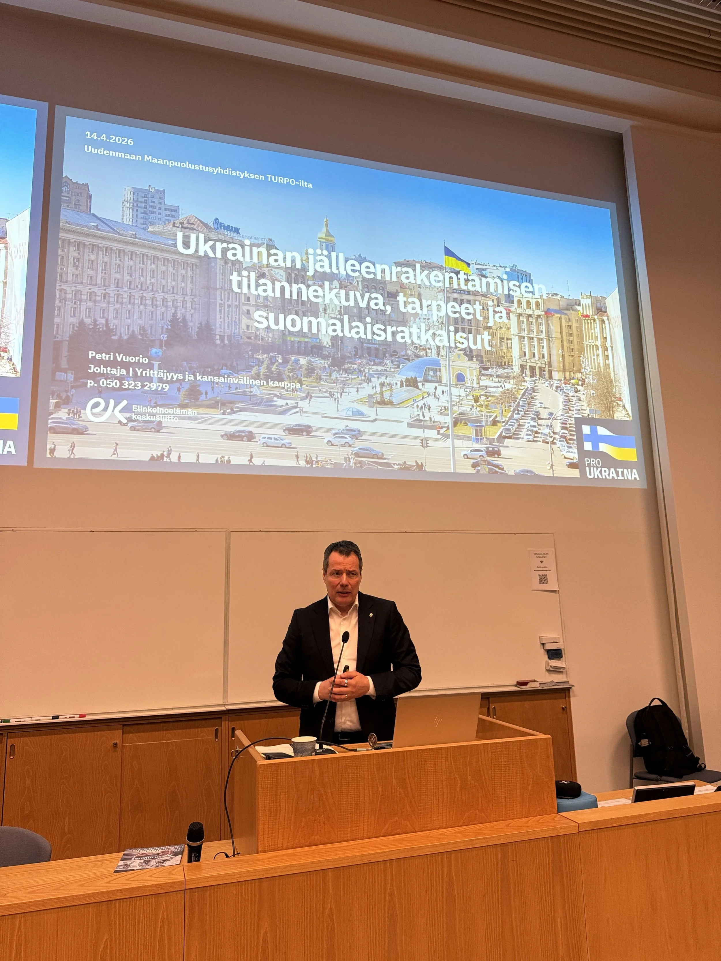 Jälleenrakentaminen ei tapahdu pelkästään sodan jälkeen vaan jälleenrakentaminen on jatkuvaa. Iskut tuhoavat erityisesti logistiikkaa, siviilikohteita, energiainfraa, koteja, kouluja, sairaaloita, tiestöä, rautateitä, lentokenttiä jne. Jälleenrakentaminen on inhimillisesti tärkeää Ukrainan taistellessa myös Euroopan ja demokratian puolesta, mutta se on myös mahdollisuus yrityksillemme ja viennille, ja Ukraina tarvitsee kumppaneita.
